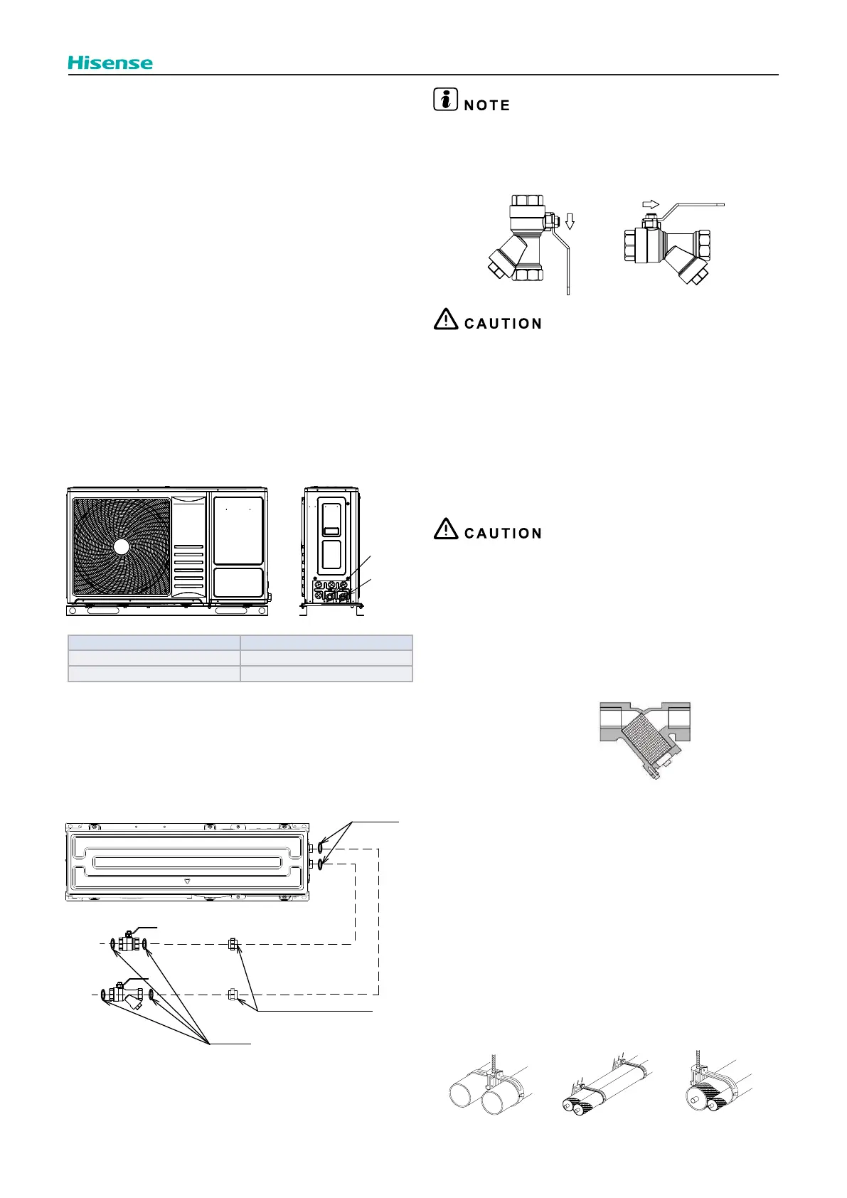 Deformation of the piping can cause malfunctioning of the unit.