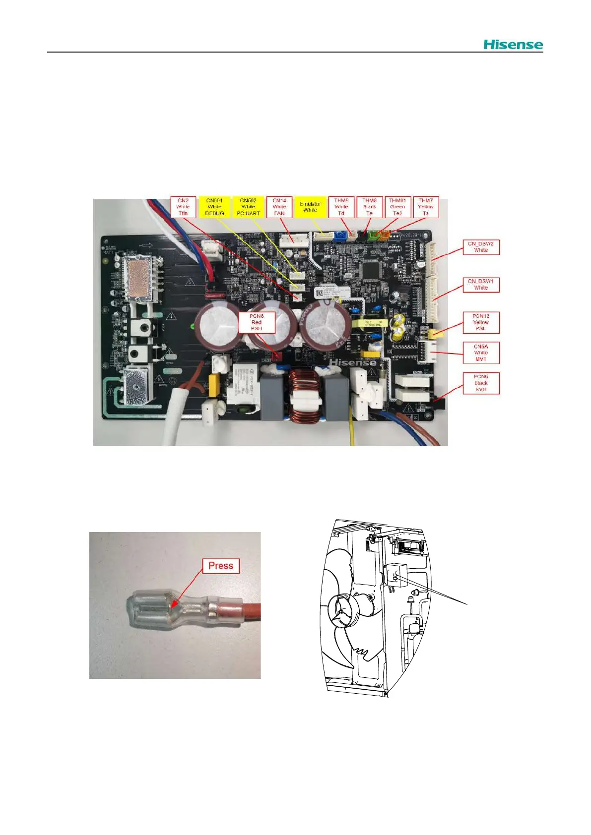 after pressing the pick on the terminals. Do not pull out forcibly, otherwise it may cause damages to the PFC inductor terminal.