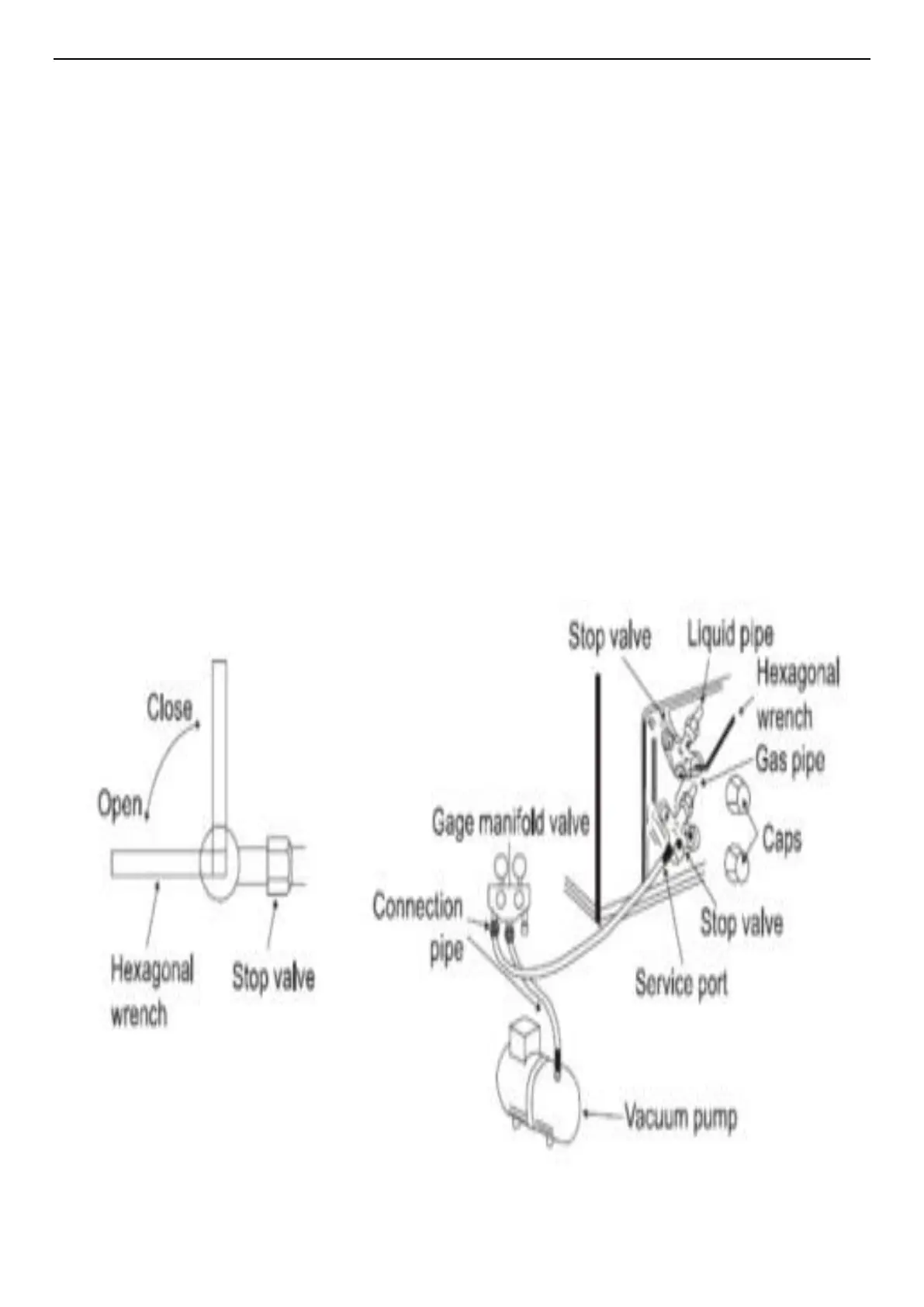 After refrigerant pipes are connected and evacuated, fully open all stop valves on gas and liquid pipe