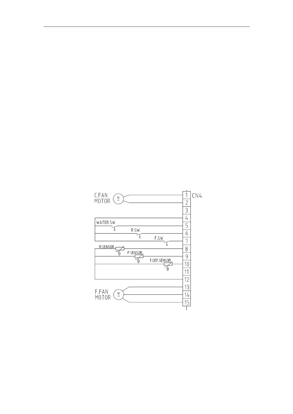 7.The water sw corresponding pin No.4 and No.5 on 15 pins connector of mainboard, as