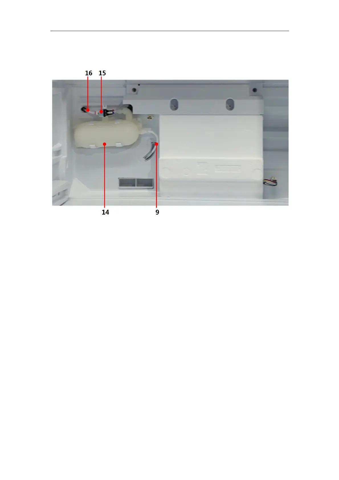 9—Water tube (white, flow into the water tank in fridge room)