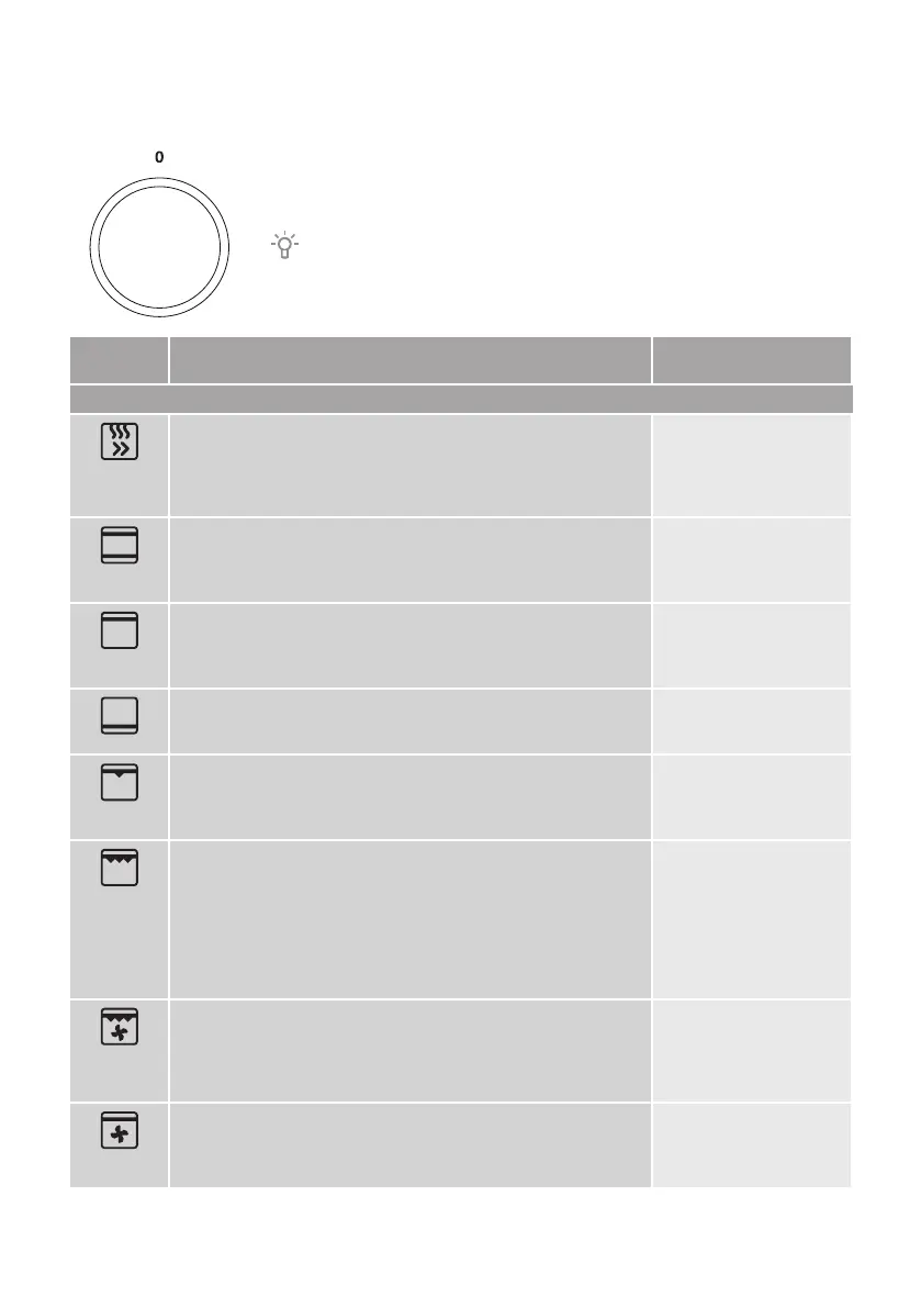 Rotate the knob (left and right) to select the cooking system (see