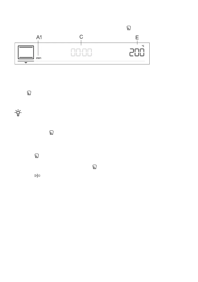 Press and hold the key. STEP2 (second cooking step) will appear on the display unit (the first