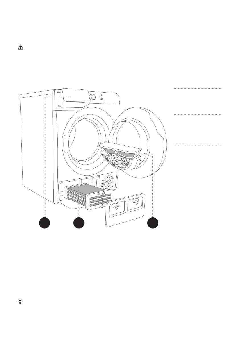 amount of accumulated fibres from the fabric could cause malfunction or failure of the dryer.