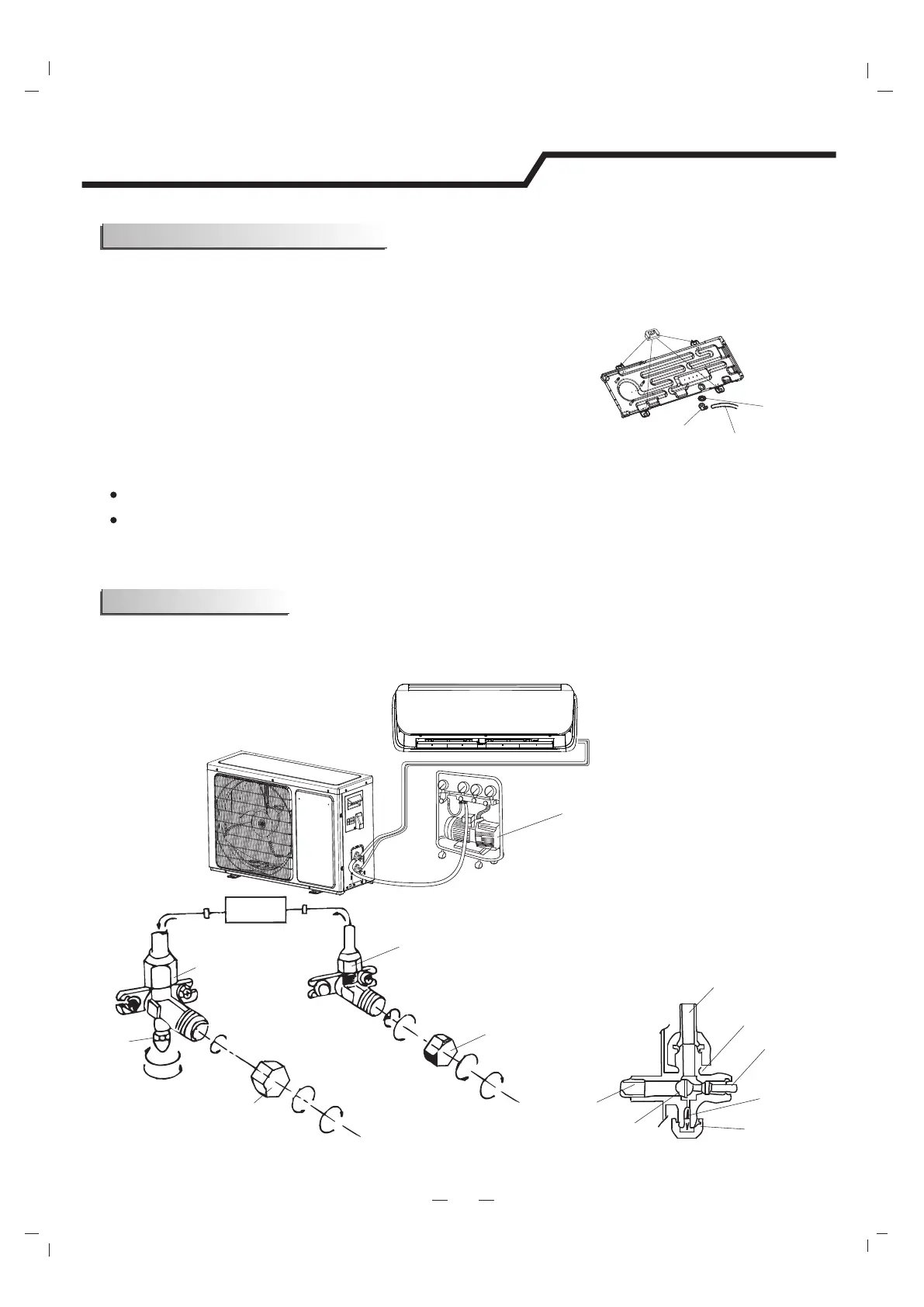 interior e exterior, evacue o ar e a umidade do ciclo de refrigerante usando uma bomba de vácuo, como mostrado abaixo.