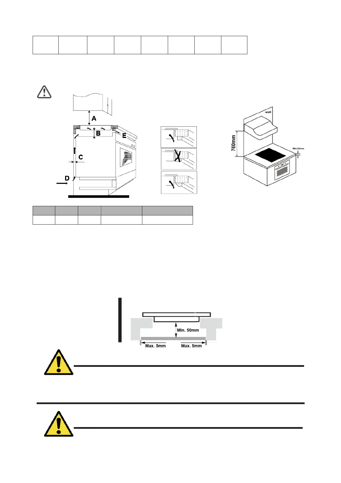 Nota: La distancia segura entre la placa y la alacena sobre la placa debe ser de al menos 760 mm