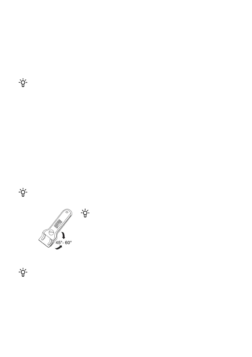 Do not press the scraper perpendicularly against the glass and do not scratch the hob
