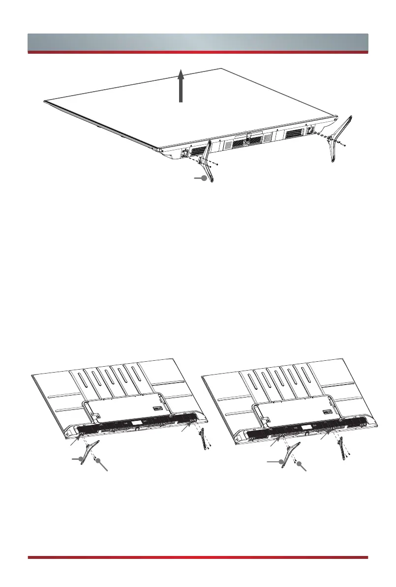 3. Secure the stands to the TV with the 4 screws in accessory tightly.