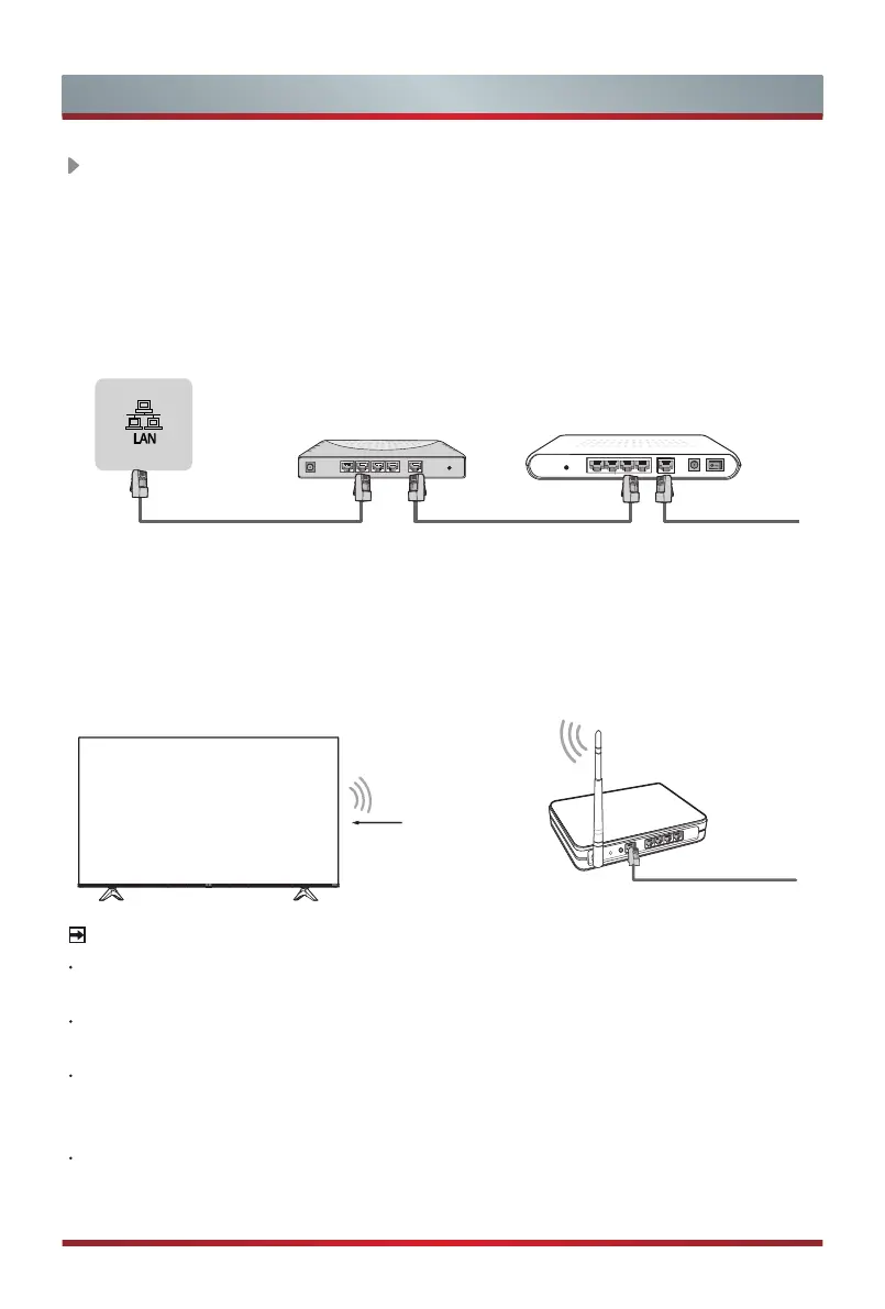TV to an external modem or router using a LAN (Ethernet/Cat 5) cable. See the