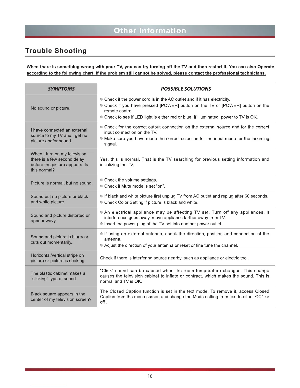 Hisense F46K20E - Other Information: Troubleshooting; Troubleshooting Common Issues