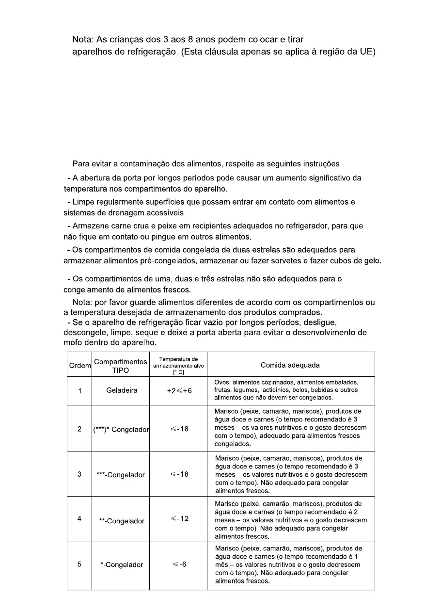 preservação de outros alimentos e aumentará o consumo de energia.