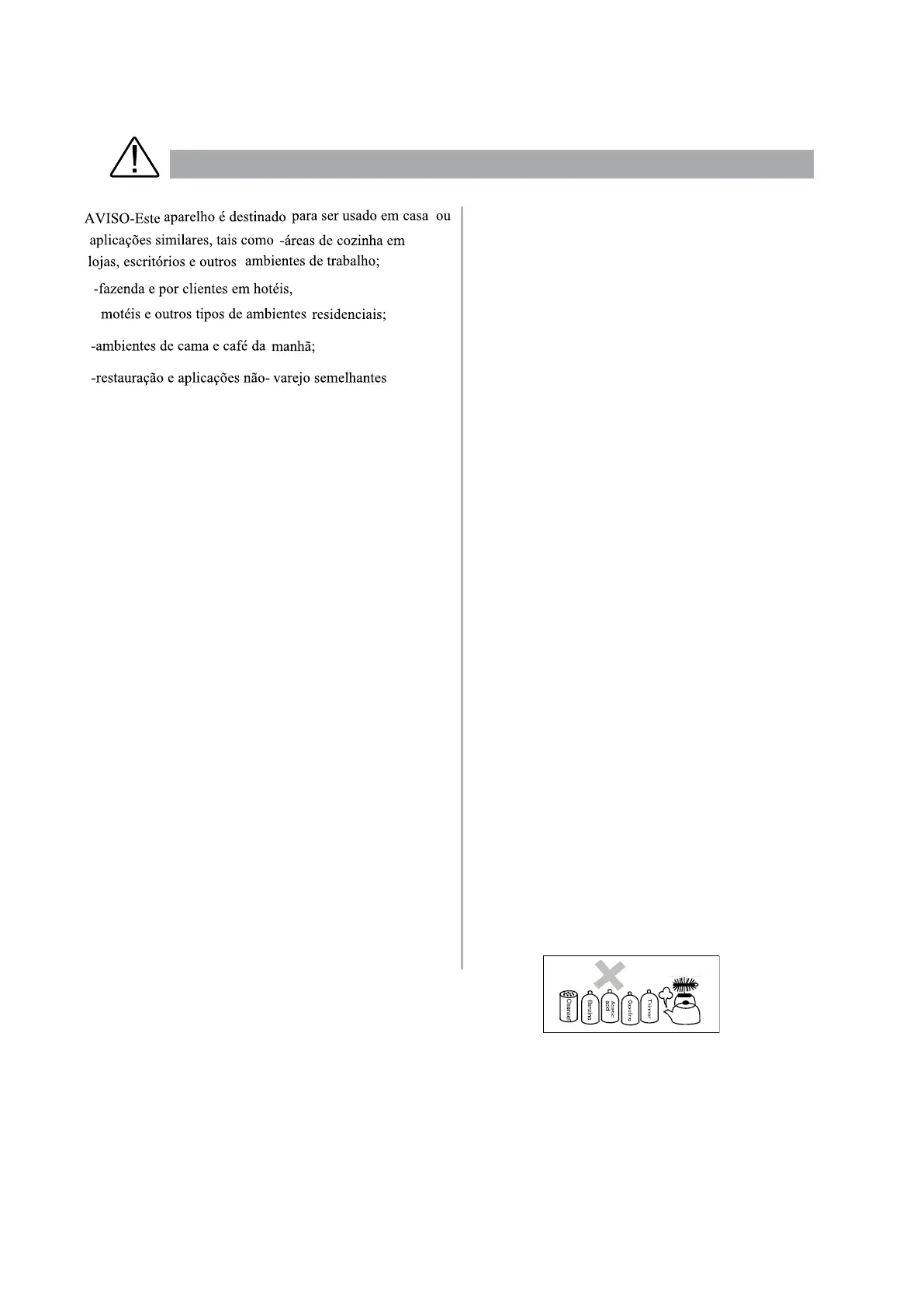 ● Nunca use pó de polimento, pó de sabão, benzina, óleo