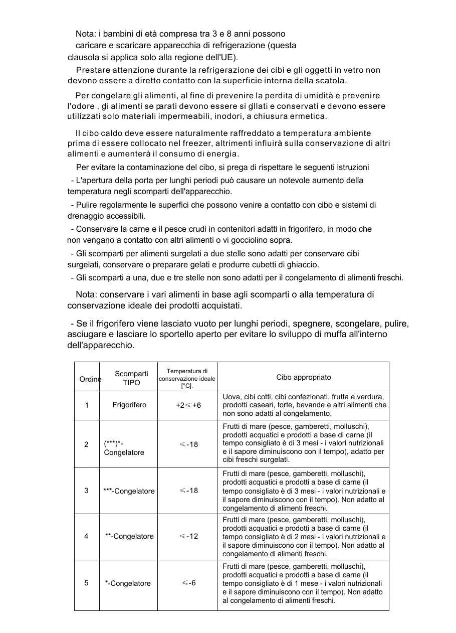 - Gli scomparti a una, due e tre stelle non sono adatti per il congelamento di alimenti