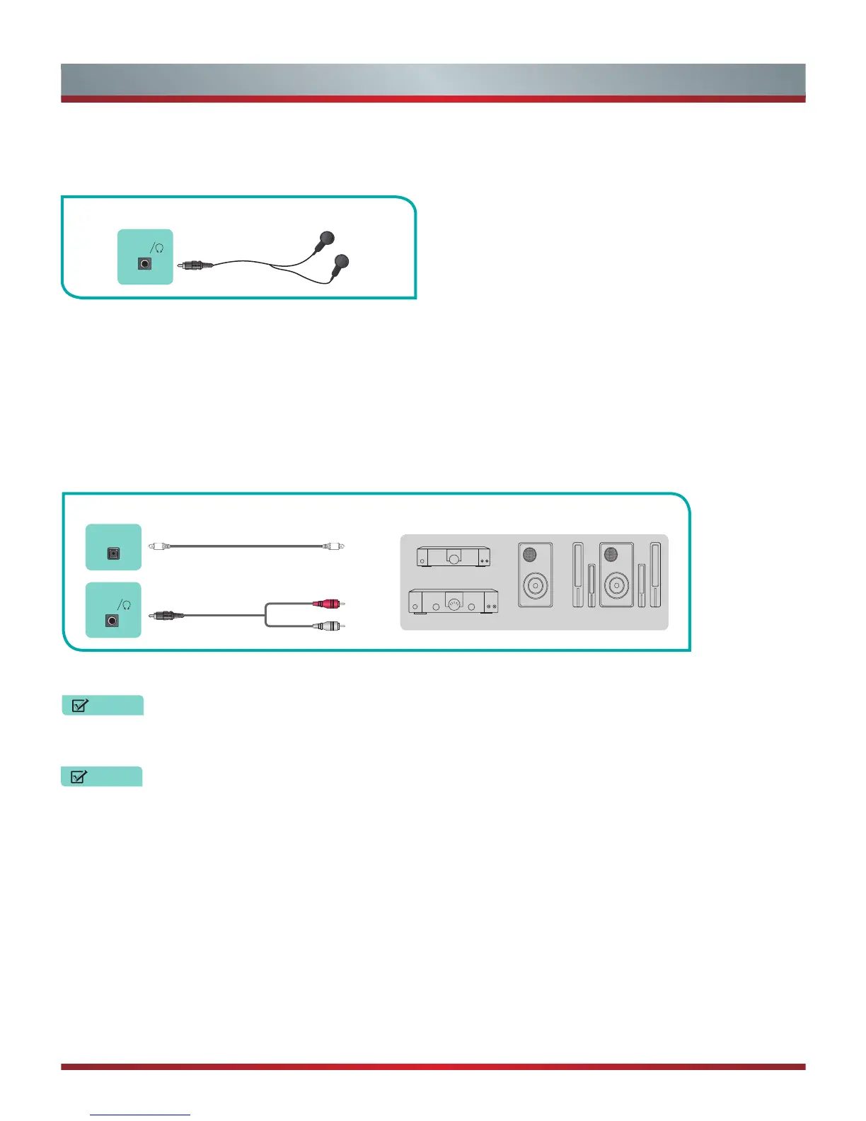 OUT] jack of the TV. Another option is to use an RCA Y-cable (1/8”-stereo mini to L/R phono) to connect an analog sound