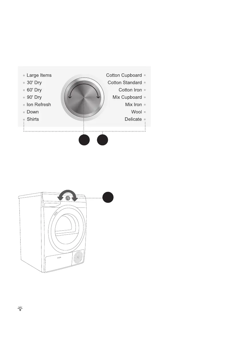 When you select the drying programme, the light (2a) next to the selected drying programme lights