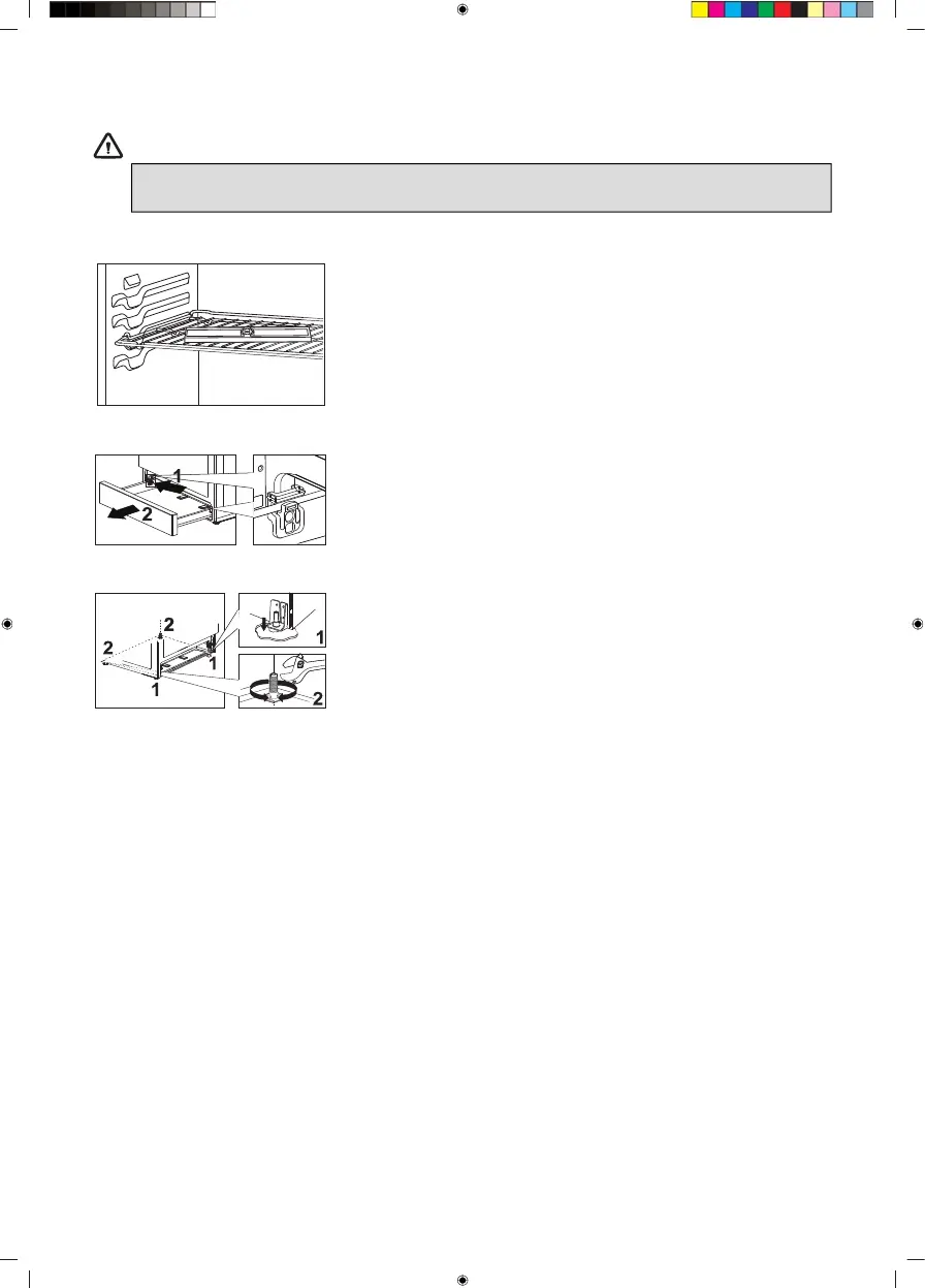 • Check that the door and drawer are parallel to each other and that both operate smoothly. If they