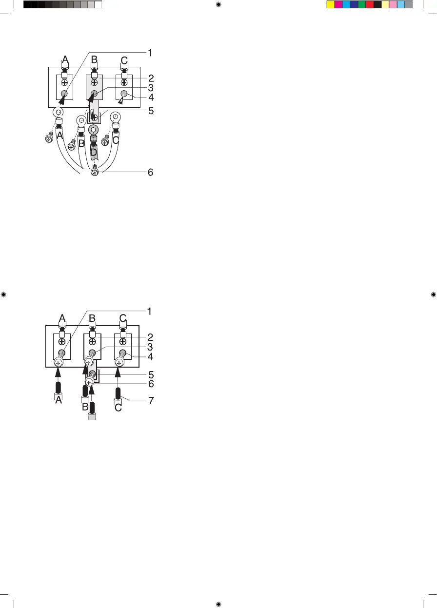 • Retirer les 3 visinférieures du bornier.Ne pas desserrer les vissupérieures.