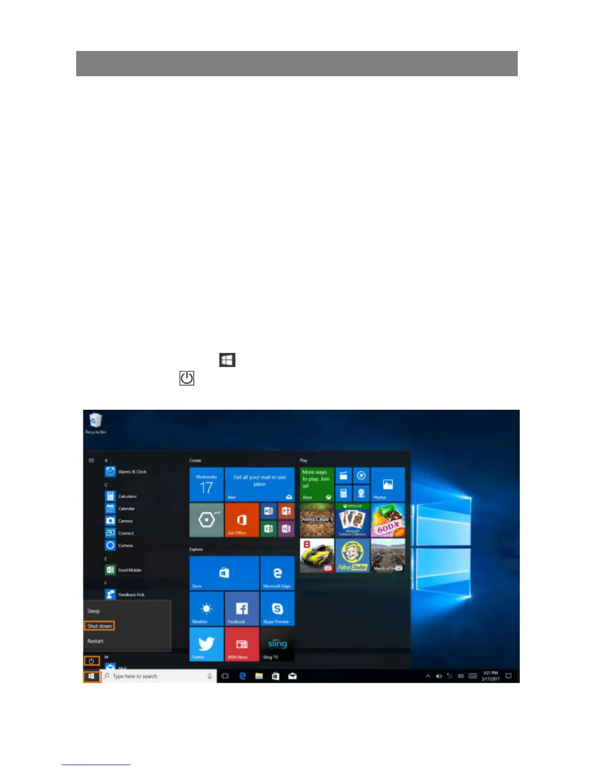Using Start menu: