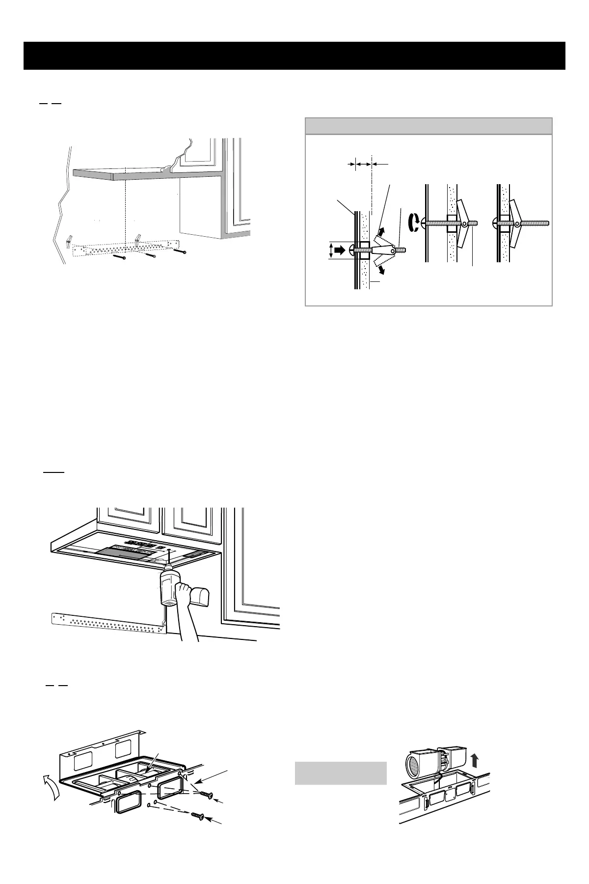 2.Place the mounting plate against the wall and insert the toggle wings into the holes in the wall to mount