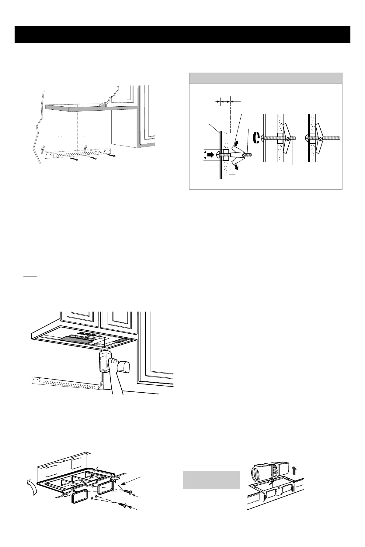 placa de yeso y fije las alas de la palanca a ¾" en cada tornillo mecánico (3/16" X3").