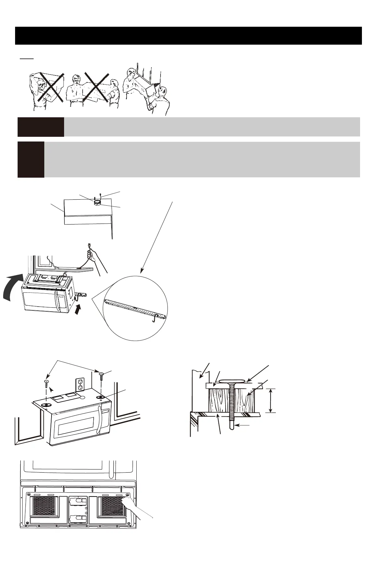 1. Levante el microondas, inclínelo hacia adelante y enganche las