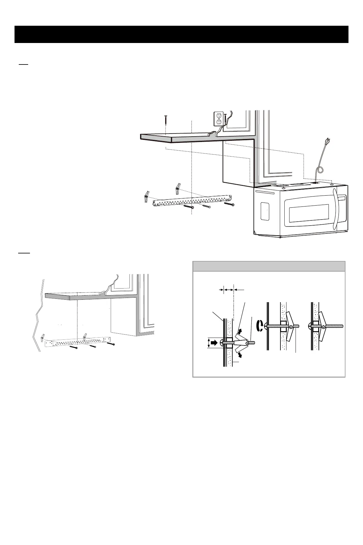 placa de yeso y fije las alas de la palanca a ¾" en cada tornillo mecánico (3/16 "X3").