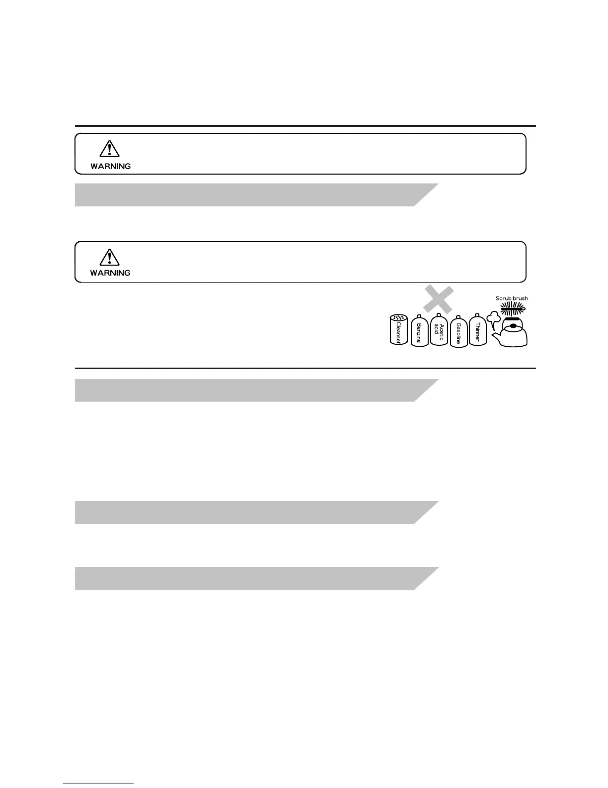 WARNING: Do not splash water directly onto the freezer and do not wash with water.