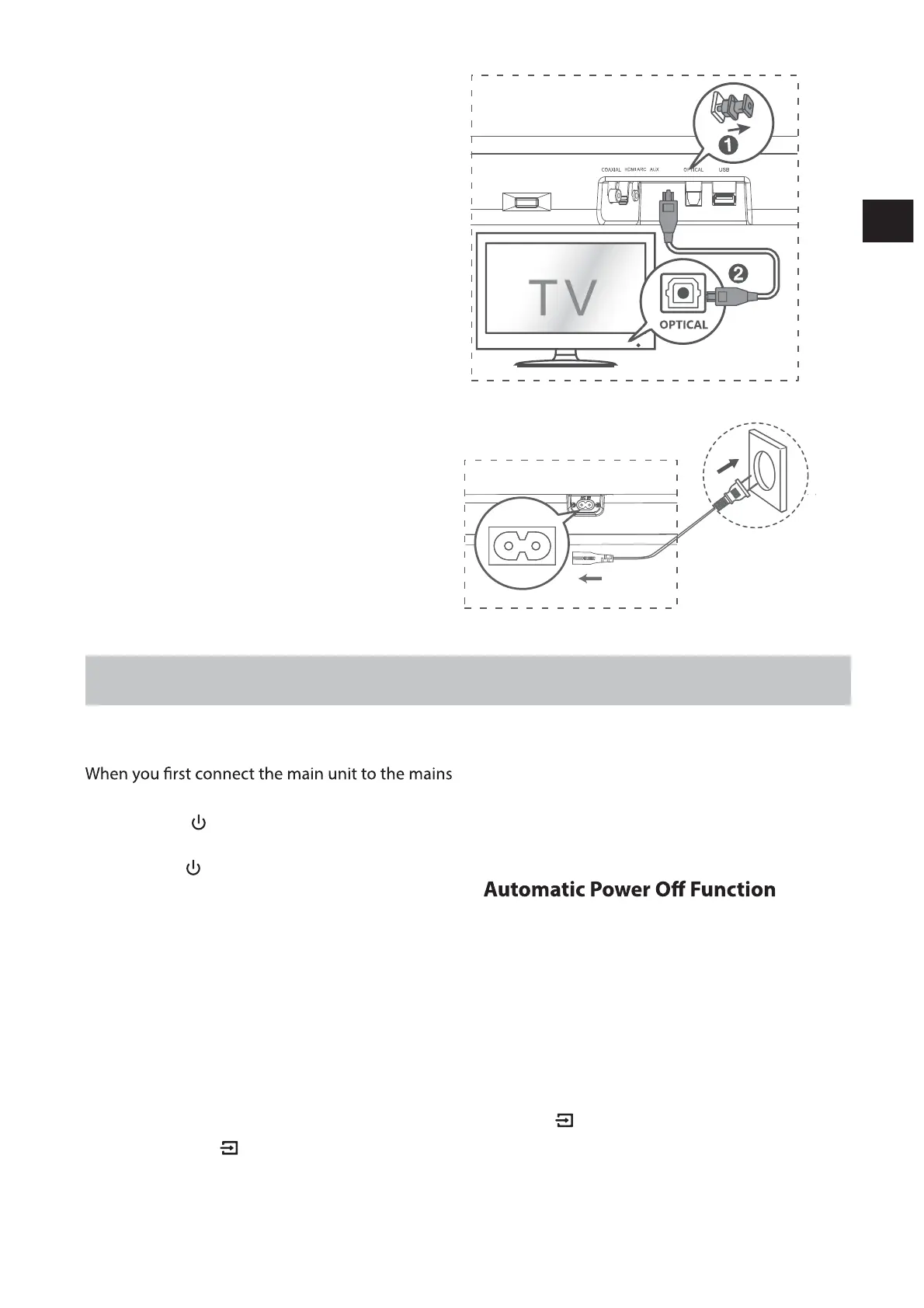 OPTICAL / COAXIAL / HDMI ARC), the unit will