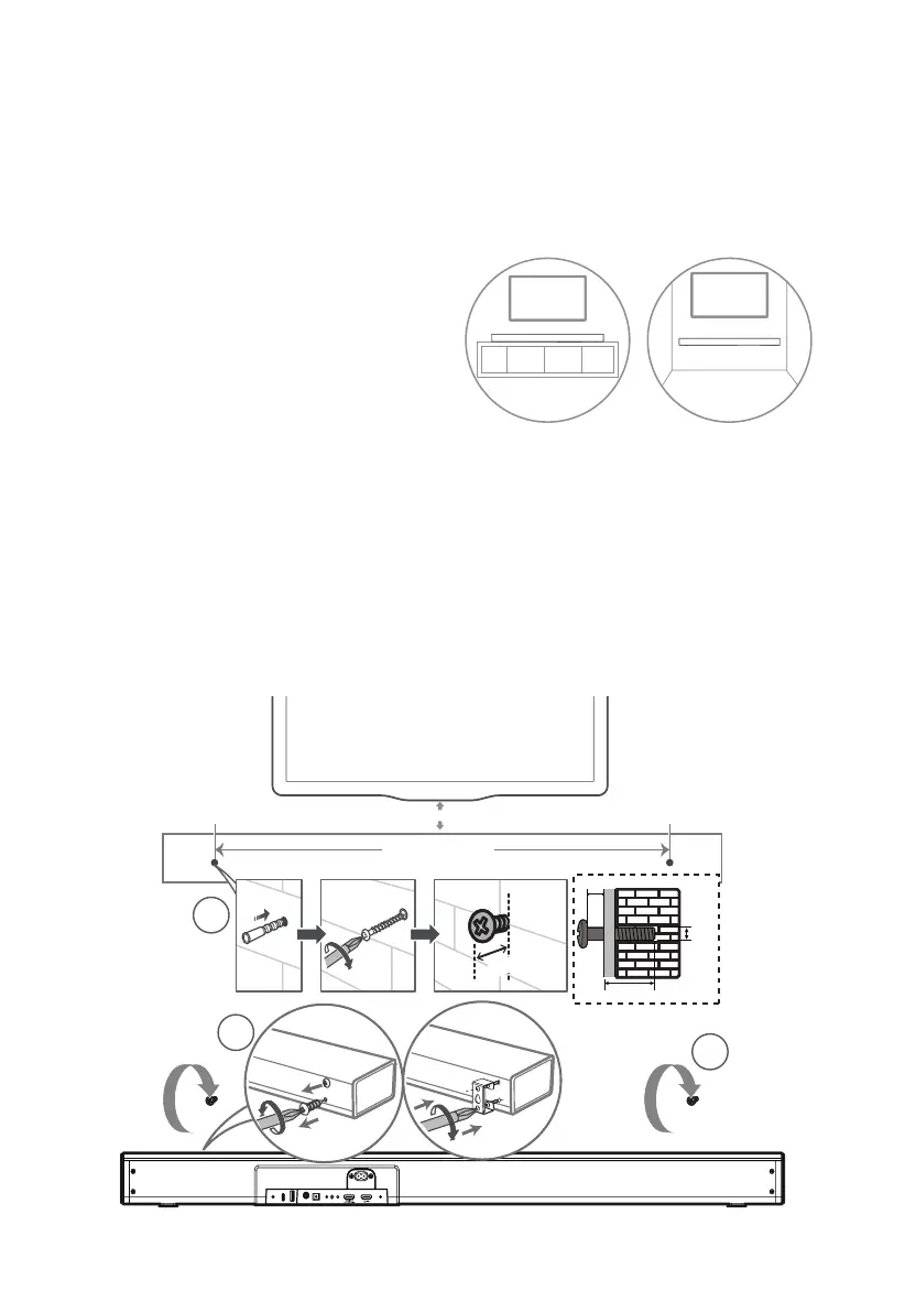 B If your TV is attached to a wall, you can mount the unit on the wall directly below the TV screen.