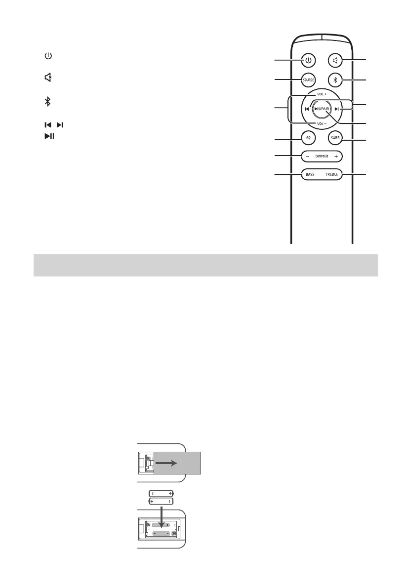 • Remove the battery from the remote control