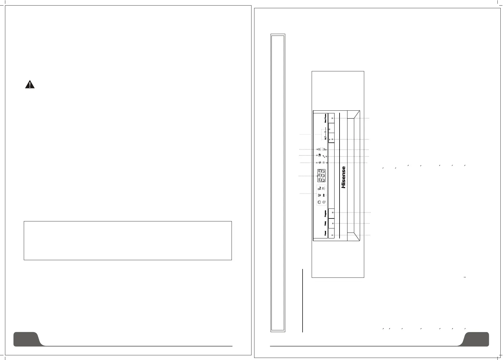 9 Rinse aid refill indicator: The indicator lights up when dispense