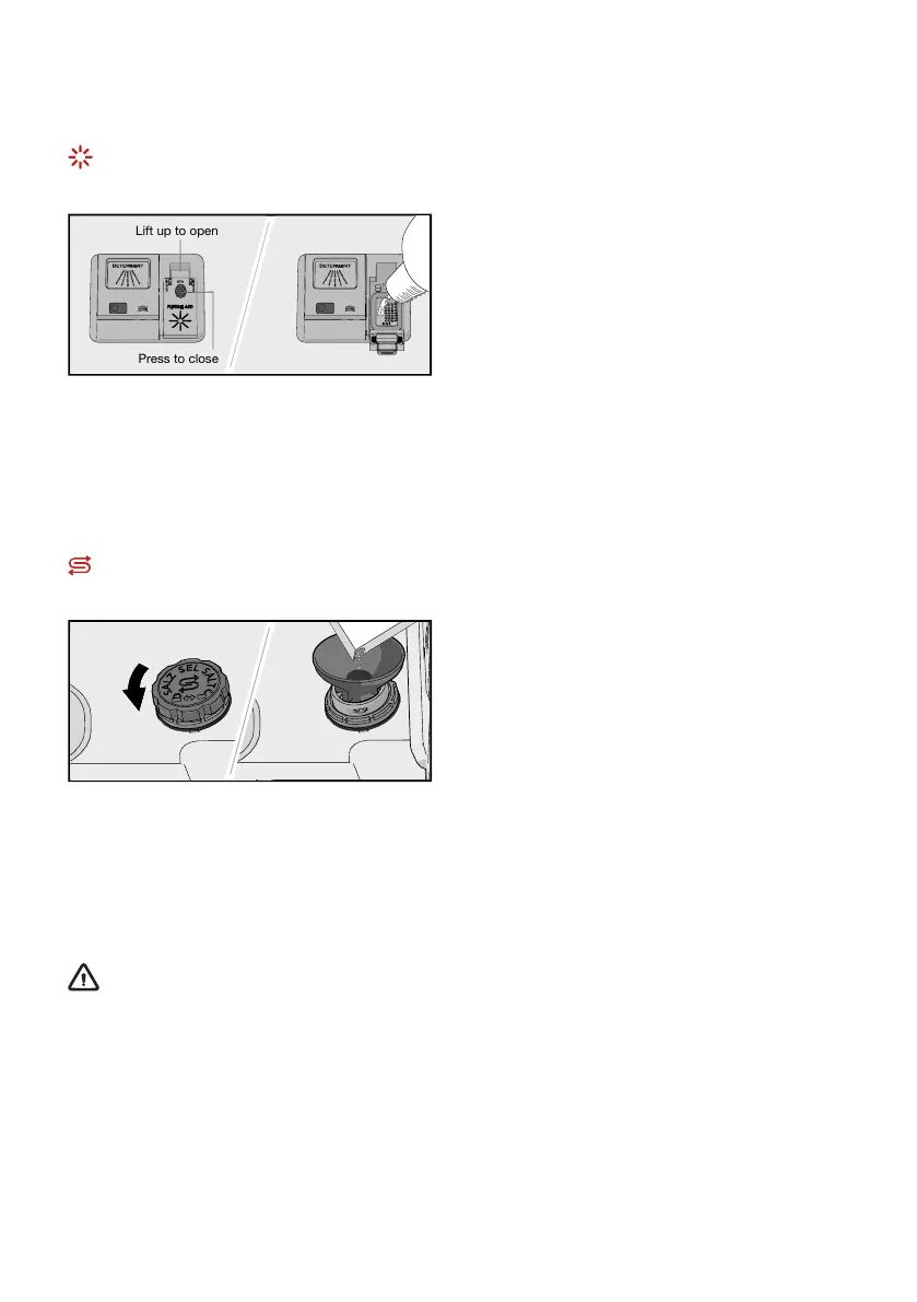 When the rinse aid needs topping up, the above symbol lights on the display.