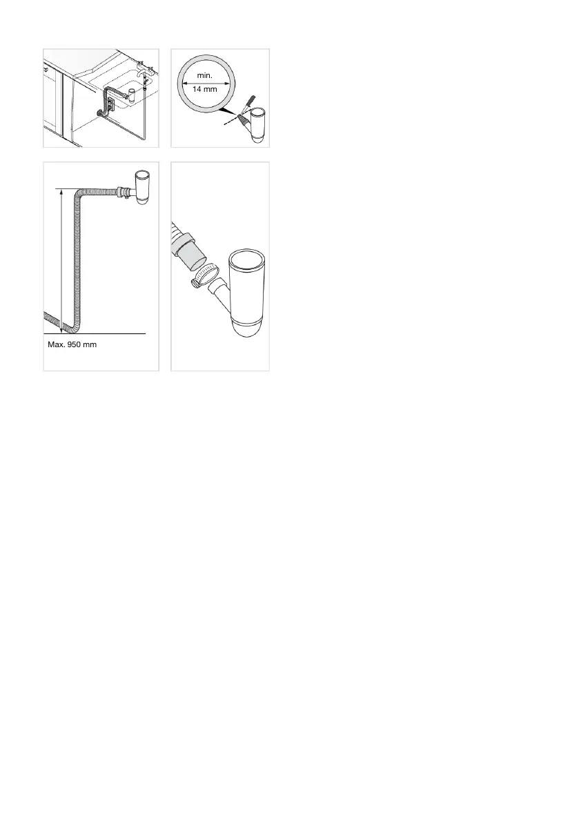 No part of the drainage hose may be more than 950 mm above the bottom of the dishwasher.