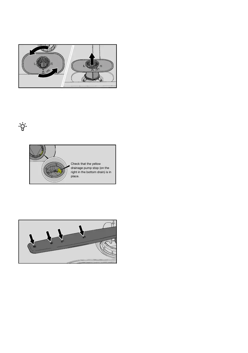 • Unscrew the spray arm bearings anticlockwise to remove the spray arm from the upper basket.