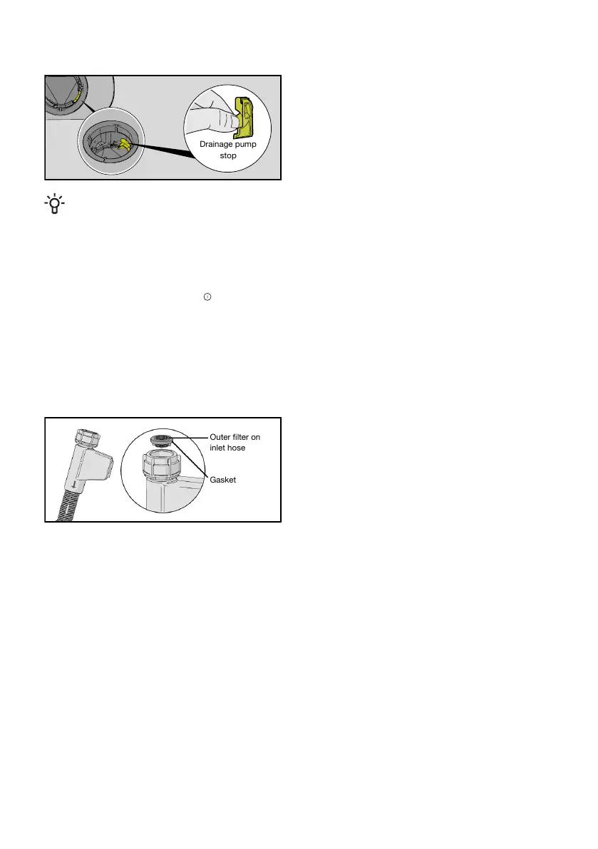 If the water supply contains small particles, the outer filter on the inlet hose may become blocked,