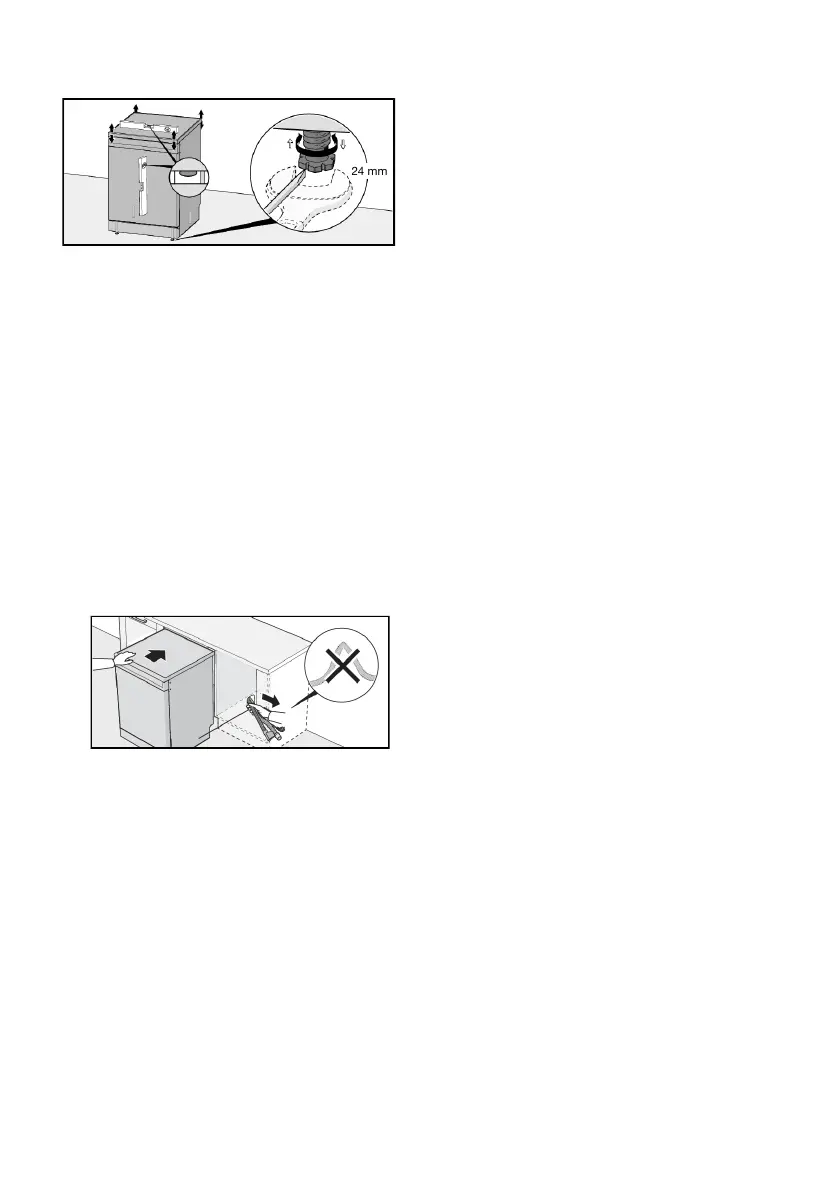 • Make sure the area on which the dishwasher is to be installed is firm. Adjust the dishwasher's