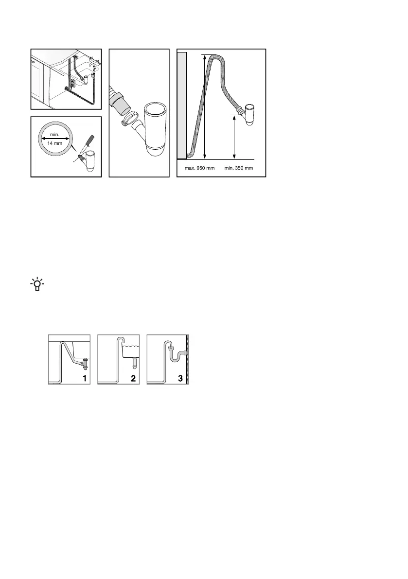 The hose must always discharge at least 350 mm above the bottom of the machine.