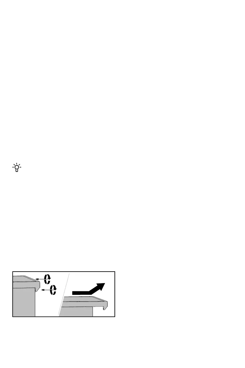 The dishwasher can be installed in a recess without its worktop. If the dishwasher's worktop is removed,