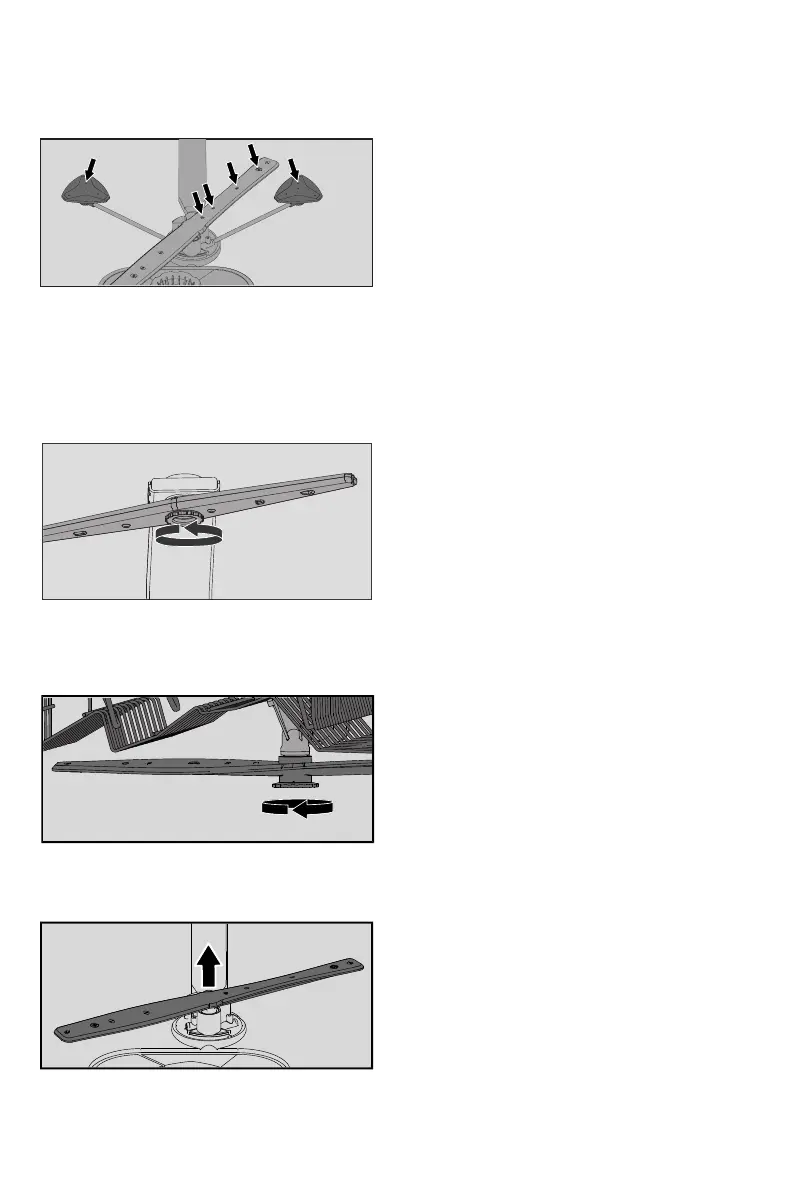 • Unscrew the spray arm bearings anticlockwise to remove the spray arm from the upper basket.