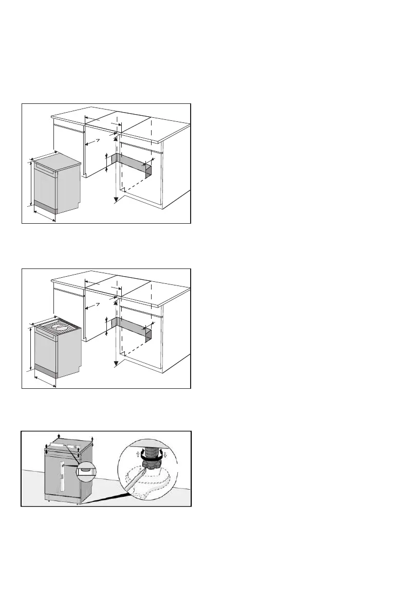 Ÿ When the dishwasher is installed in a recess without its worktop, the built-in measurements are