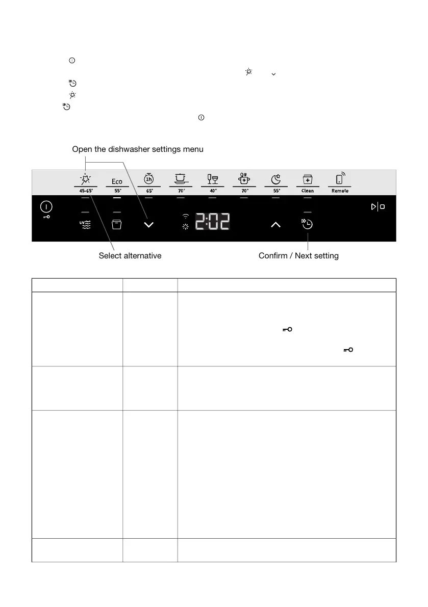 To open the dishwasher settings menu, press and hold and until SEt is shown on the display.