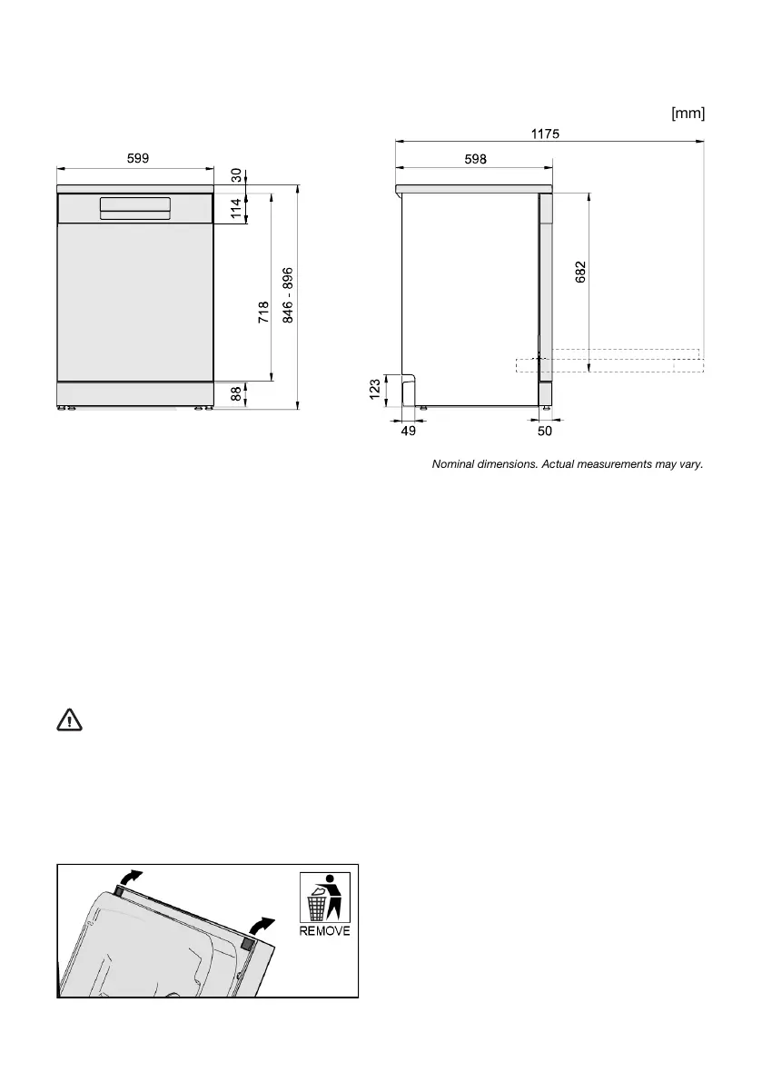 Do not forget to remove the transport protection for the door when unpacking the dishwasher.