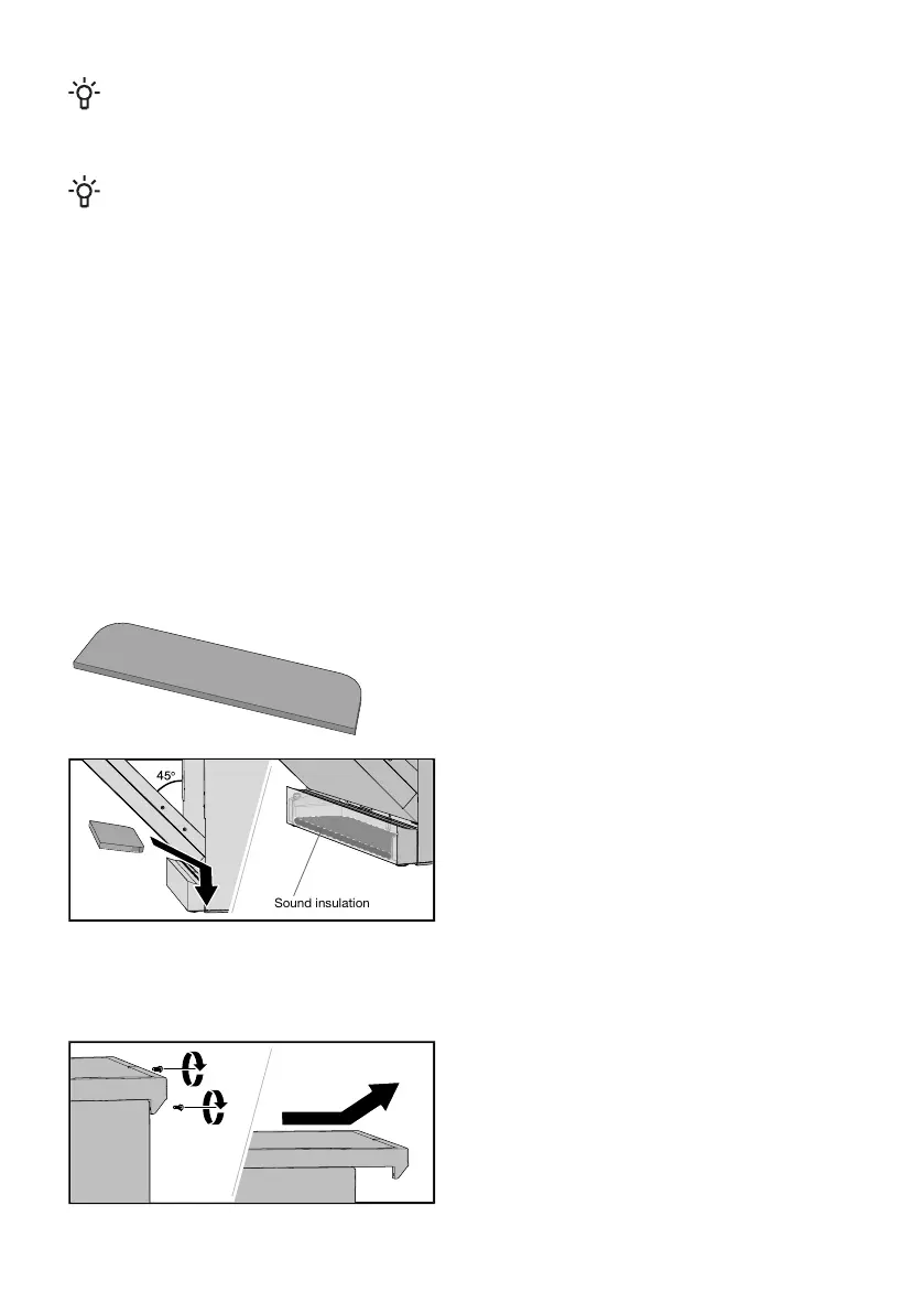 The dishwasher can be installed in a recess without its worktop. If the dishwasher's worktop is removed,