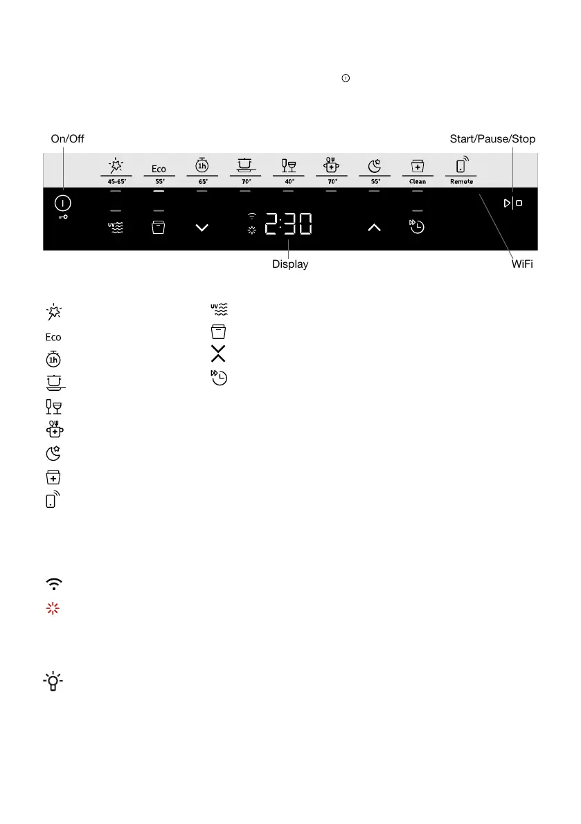 To install the dishwasher see the chapter, Installation. Press .