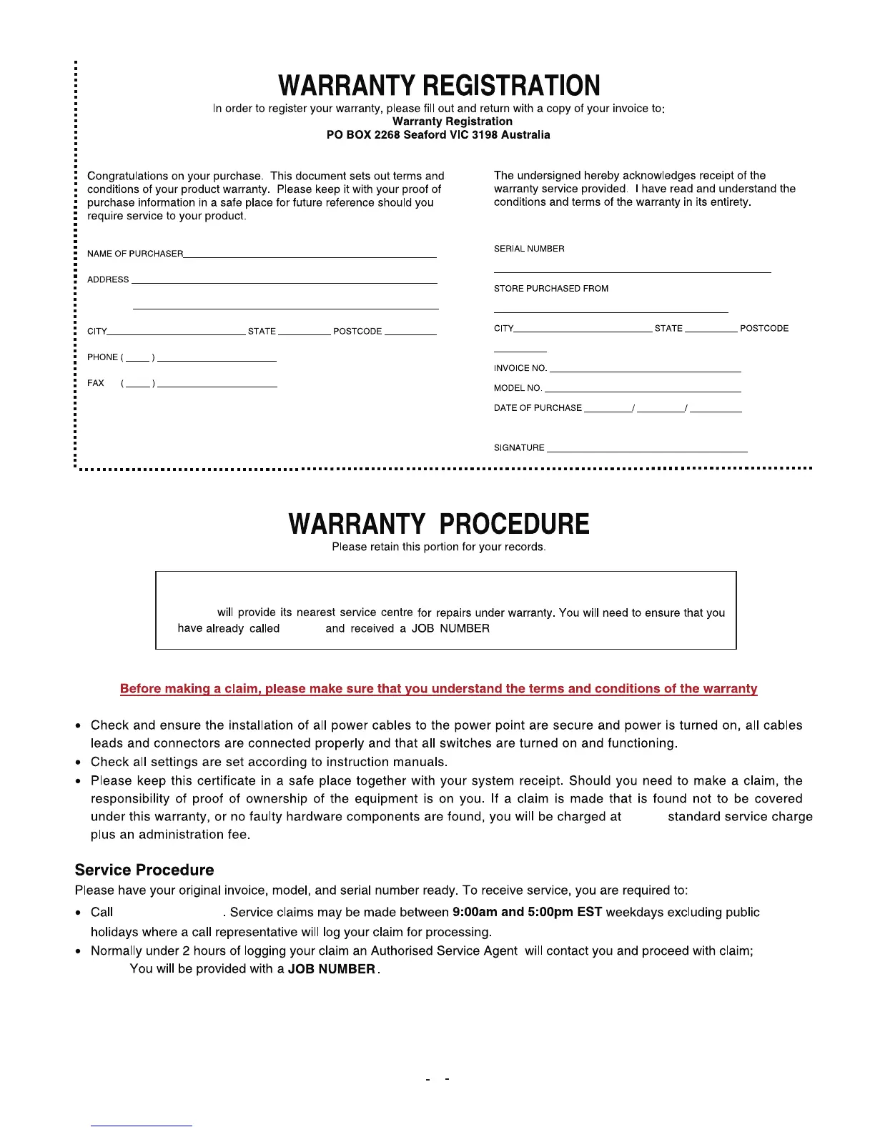 Hisense HSLC8129HDI - Warranty Registration; Warranty Procedure; 36 Months In-Home Replacement Warranty; Service Procedure