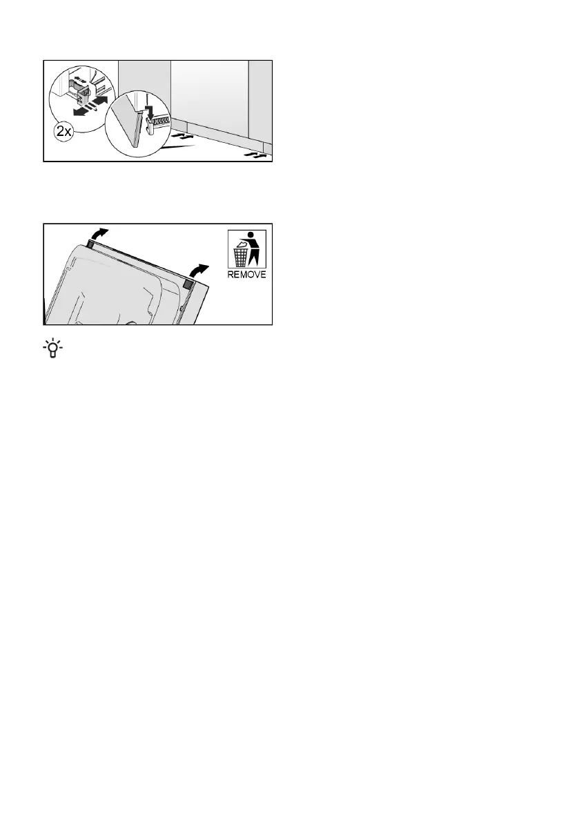 Remove all transport protection on the door and inside the dishwasher.