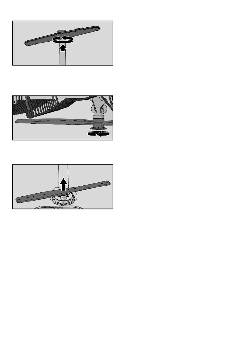 • Unscrew the spray arm bearings anticlockwise to remove the spray arm from the upper basket.