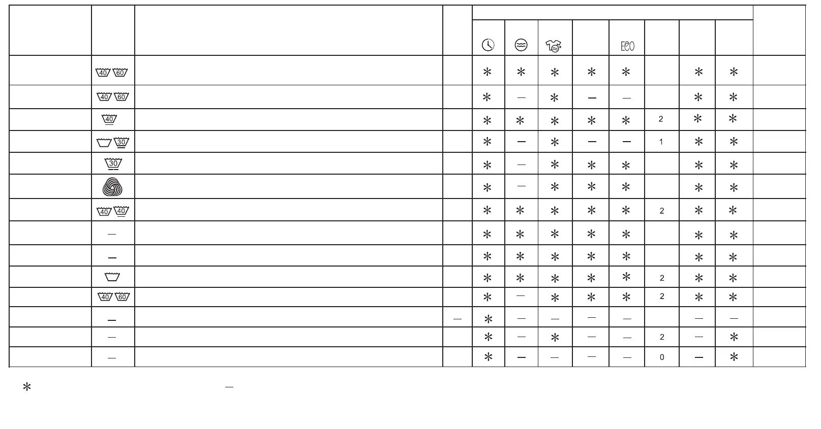 : Optional Functions Yes : Detergent Required : Cannot be selected -- : Temperature of unheated water