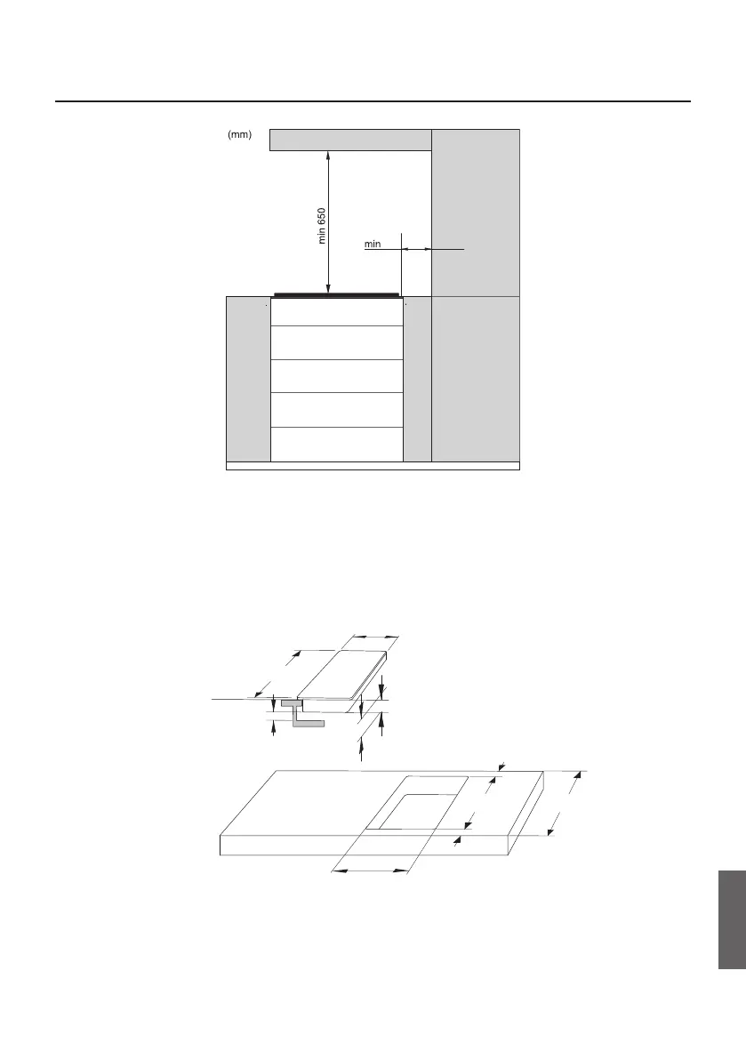 the clearance between the trim and the cooking hob is no smaller than indicated on the