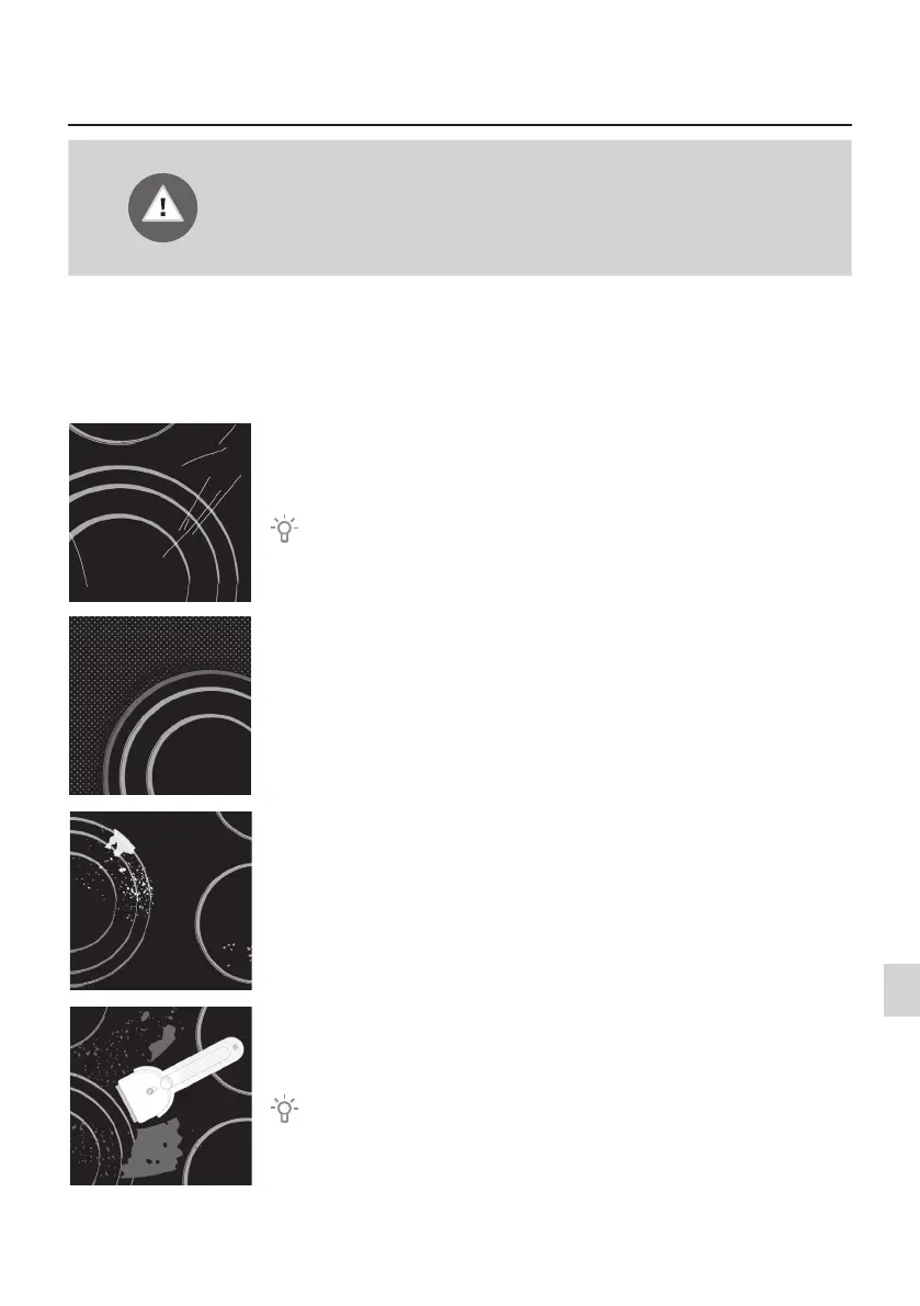 remaining impurities will burn onto the hot surface the next time you use the hob.